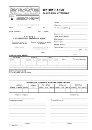 Putni nalog u listu A4