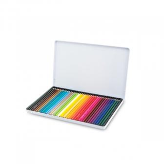- Praktična metalna kutija koja ima 36 drvenih bojica;