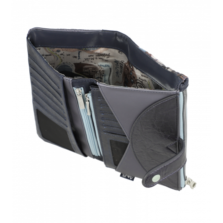 - Novčanik se otvara pomoću kopče sa zadnje strane, a u svojoj unutrašnjosti broji veliki broj pregrada za kartice i posebnu pregradu za novčiće koja se zatvara pomoću zip patenta
